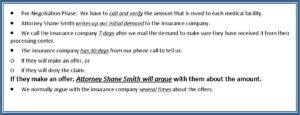 We received the first offer on your case. The insurance company has offered $ for your bodily injury claim. I do not want you to be concerned about their offer. This begins the negotiation process of your claim. Over the next three weeks, I will be arguing with them about your case. Their first offer that they start with is always low.My job is to get the insurance company to offer the most money they will offer prior to us filing a lawsuit. Once I feel we are at that number, then you and I will have to discuss what you want to do about your case. You will be able to settle or have us file a lawsuit. At that time, I will send you a complete breakdown of the bills, how much money you would receive, and all of the other financial information.During the next three weeks, I will be talking to the insurance company several times. Three weeks is the normal length of time it takes to argue with them. Some insurance companies or individual adjusters take longer. If this becomes the situation in your case, Jennifer or I will call you and let you know that it will take a little while longer. I will move as fast as I can during the negotiation process, but I do not want them to think that either of us is desperate to settle, because that will cause them to lower their offer.