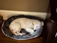 Mientras tanto en casa, Luna todavía se está adaptando. Está muy bien, pero hemos tenido que ser muy cuidadosos con los hongos que aparecen en el jardín.
